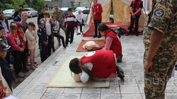 Кеминдеги окуучулар коопсуздук эрежелерин үйрөнүп, машыгуудан өтүп жатышат